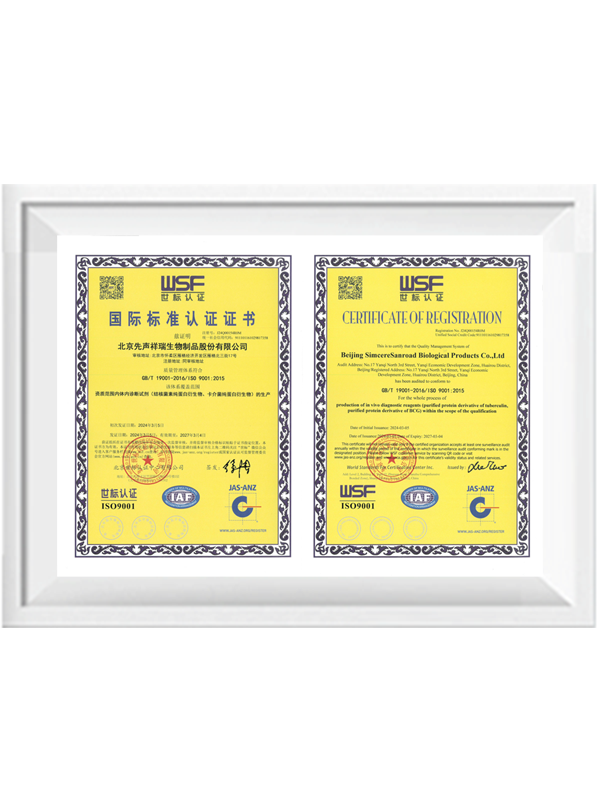 先聲祥瑞 先聲祥瑞發展歷程企業文化 先聲祥瑞是先聲投資集團旗下成員企業,位于北京雁棲湖畔,懷柔科學城內,是一家正在成為創新驅動型的國家高新技術企業、北京市專精特新“小巨人”企業。集研發、生產、銷售預防用生物制品、生物藥、化學藥、體內及體外診斷試劑為一體,聚焦抗感染、傳染病、疫苗領域,全面打造“結核領域一體化解決方案的服務商”,以“致力創新疫苗,造福人類健康”為目標,并不斷努力前行! 發展歷程 2000 2003 2011 2012 2013 2014 2016 2019 2020 2021 2022 2023 2024.01 2024.02 北京祥瑞生物制品有限公司成立 公司遷址注冊于懷柔區雁棲經濟開發區(現懷柔科學城),建設疫苗生產基地 具有自主知識產權的國家一類新藥A、C群腦膜炎球菌結合疫苗瑙幔寧?取得「新藥證書」、「藥品注冊批件」 A、C群腦膜炎球菌結合疫苗瑙幔寧?上市銷售 結核菌素純蛋白衍生物 (TB-PPD) 再上市 卡介菌純蛋白衍生物 (BCG-PPD) 再上市 先聲投資集團收購祥瑞生物 榮獲國家高新技術企業 榮獲中國防癆協會科學技術一等獎中國防癆協會結核病醫學轉化創新基地 榮獲第一批北京市專精特新 “小巨人”企業稱號 3月 建立mRNA疫苗技術平臺7月 登陸新三板并進入創新層,證券簡稱:祥瑞生物 證券代碼:873821 11月1日,公司更名“北京先聲祥瑞生物制品股份有限公司”,發布全新CI 榮獲“北京市企業技術中心”稱號;BMII車間取得藥品生產許可證,公司發展再邁堅實一步 Xi01產品獲批醫療器械注冊證 企業文化 企業使命 讓患者早日用上更有效藥物 核心價值觀 患者第一、群體奮斗、誠信、杰出 先聲 CI Simcere源自英文sincere,體現先聲真誠待人之道。 左側是先聲人迎風奔跑的旗幟,代表不懈奮斗和敢于 追求杰出的精神。 綠色寓意著生命、健康和活力。 下載.AI 下載.JPG 下載.PNG 先聲管理原則 1. 先聲生而為患者。 2. 聚焦“更有效、差異化”。 3. 以客戶為中心。 4. 正直與公正。 5. 主人翁精神。 6. 極高的用人標準。 7. 學用他人所長。 8. 向外拓展不“內卷”。 9. 全力創造高績效。 10. 注重投入產出。 11. 堅持自我批判。 企業榮譽 北京市節水型單位 中國防癆協會結核病醫學轉化創新基地 高新技術企業 北京市“專精特新”中小企業 北京市專精特新“小巨人”企業 北京結核病診療技術創新聯盟常務理事單位 中國疫苗協會理事單位 榮獲中國防癆協會科學技術獎一等獎 北京結核病診療技術創新聯盟常務理事單位證書 北京市商業秘密保護示范基地 ISO9001 數智化 北京市企業技術中心 快樂慈善促進會愛心企業稱號